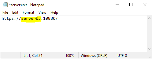 4) Change servers.txt to match your Spire server name and port. For example if your Spire server name is server03 then the file would be changed to the following: