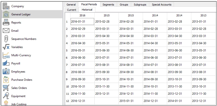 - Double-click an entry to open the period listing appropriate for the entry's fiscal-year-end: